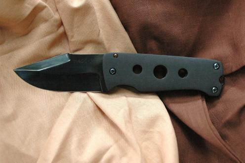 Pieghevole liner lock totalmente smontabile, lama in AISI 1095 temprata a 59 Hrc e brunita a caldo, manico in ergal sabbiato e anodizzato, liner in acciaio armonico brunito, spaziatore con passacorreggiolo in AISI 1095 temprato a 50 Hrc e brunito, viti colorate a caldo, molatura concava, filo singolo.